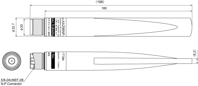 ●無指向性ダイポール型アンテナ 接栓 N-P ●WiFi-7対応 2400~2500/5150~5925/5925~7125MHz IEEE 802.11ax